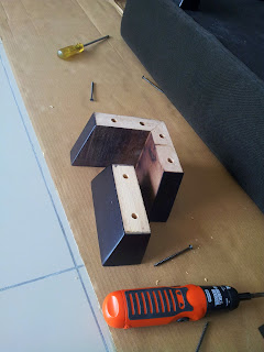 你看这两个脚相差多远。。。大家看到旁边这支电子螺丝转吗?不要以为我们有了它做起工可以很简单,唉。。。 它完全帮不上忙,不够力啦!它不是装修工人用的那种像枪一样的,它只是用电池的。。。